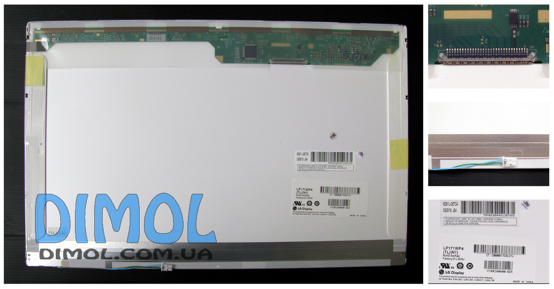 LCD матрица производства LG (LG-Philips): LP171W01, LP171W01-A4, LP171W01-A4K1, LP171W01-A4K2, LP171W01-A4K3, LP171WP4-TL02, LP171WP4-TL03, LP171WP4-TL04, LP171WP4-TLA5, LP171WP4-TLB1, LP171WP4-TLB3, LP171WP4-TLB4, LP171WP4-TLB5, LP171WP-4LN1, LP171WP4-TLN2, LP171WX2-A4, LP171WX2-A4K1, LP171WX2-A4K2, LP171WX2-A4K3, LP171WX2-A4K5, LP171WX2-A4K6, LP171WX2-A4K7, LP171WX2-A4K8, LP171WX2-A4K9, LP171WX2-B4, LP171WX2-TLA1, LP171WX2-TLA2, LP171WX2-TLA3, LP171WX2-TLB1
