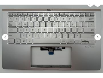 Оригинальная клавиатура для Asus ZenBook 14 UX434FLC, UX434, UX434F, UX434FL, UX434FN, UX434FA, UX434DA series, ukr, silver, подсветка, срібляста передняя панель