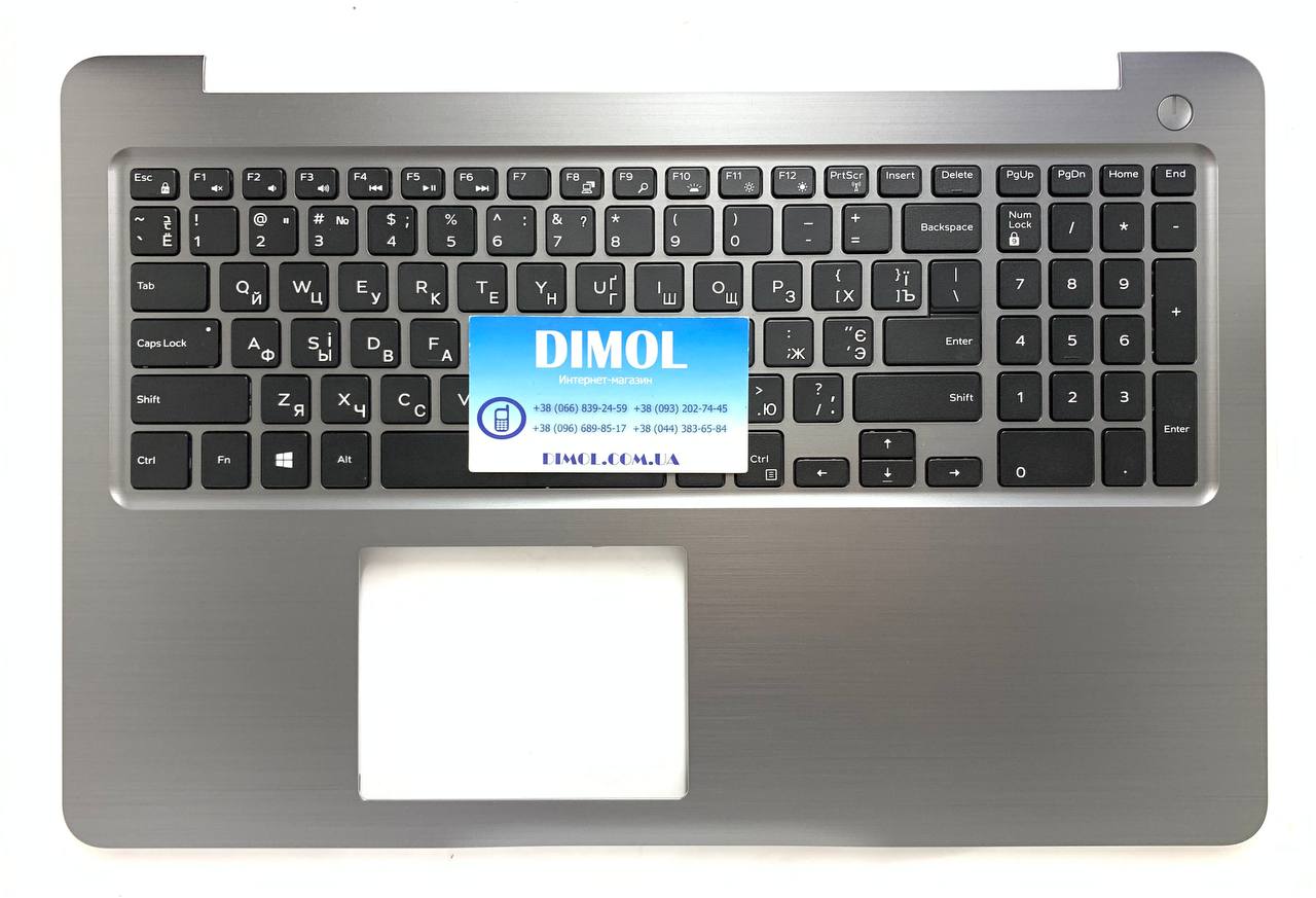 Оригинальная клавиатура для Dell Inspiron 15 5565, 5566, 5567 series, ukr, black, подсветка, серая передняя панель