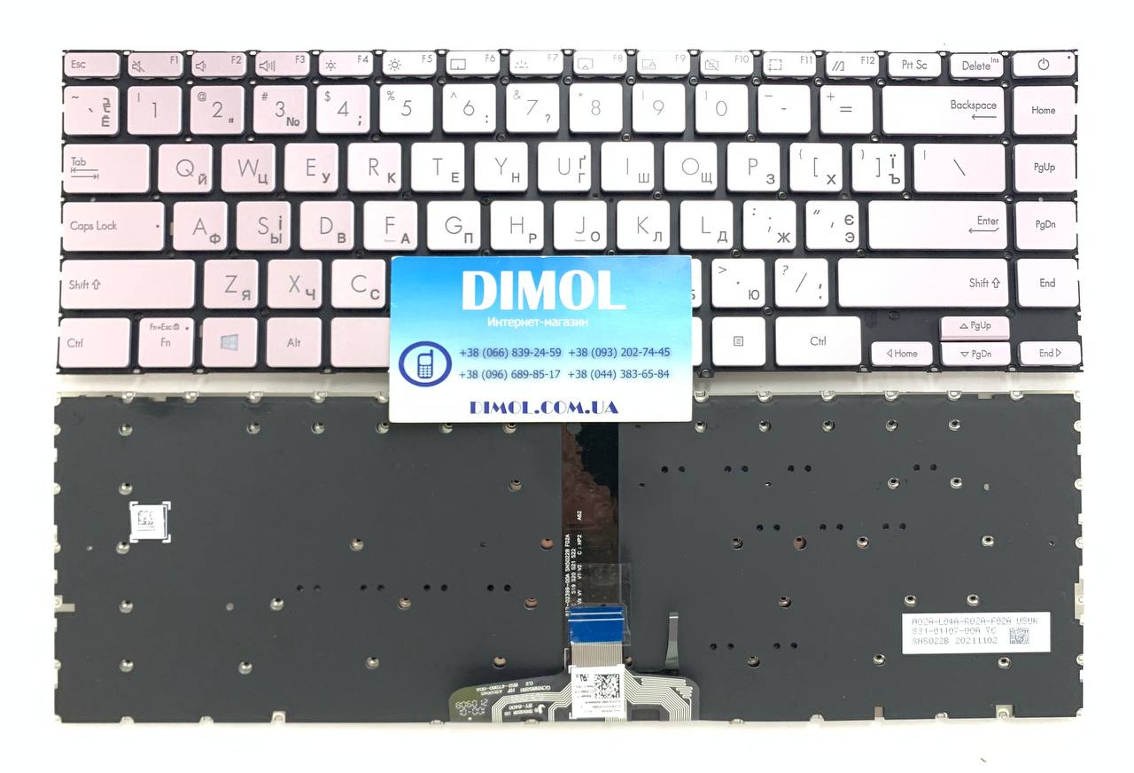 Оригинальная клавиатура для ноутбука Asus Zenbook 14 Q408, Q408U, Q408UG, Q407, Q407I, Q407IQ series, ukr, silver, подсветка