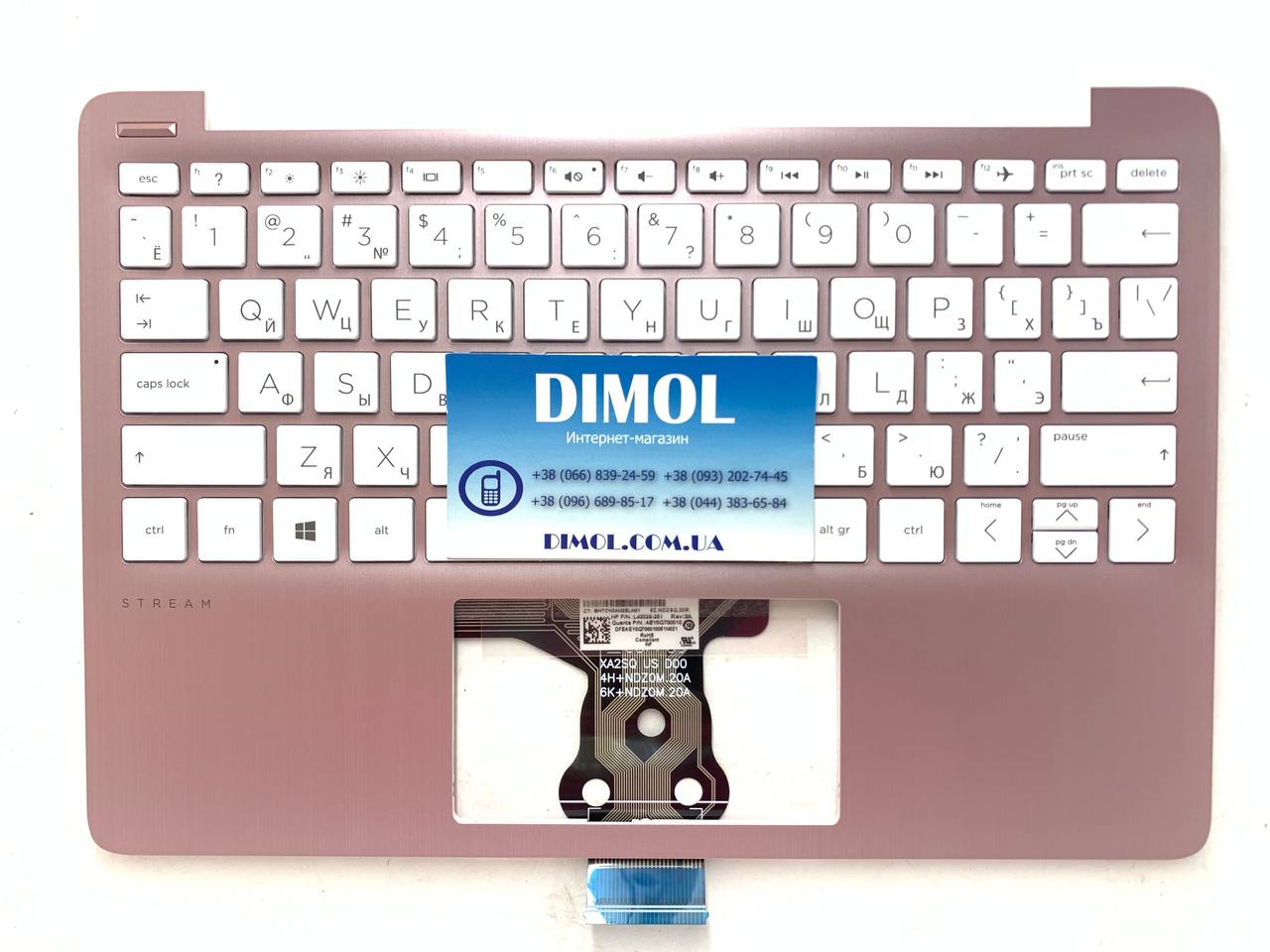 Оригинальная клавиатура для ноутбука HP Stream 11-AK series, rus, white, розовая передняя панель