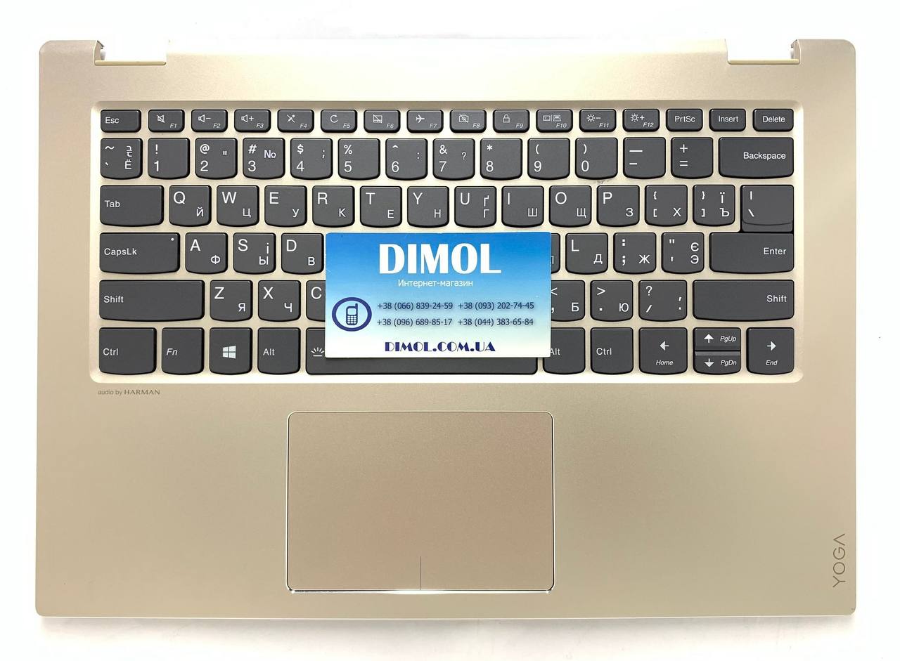 Оригинальная клавиатура для ноутбука Lenovo Yoga 520-14, 520-14IKB series, ua, gray, подсветка, золотая панель, тачпад