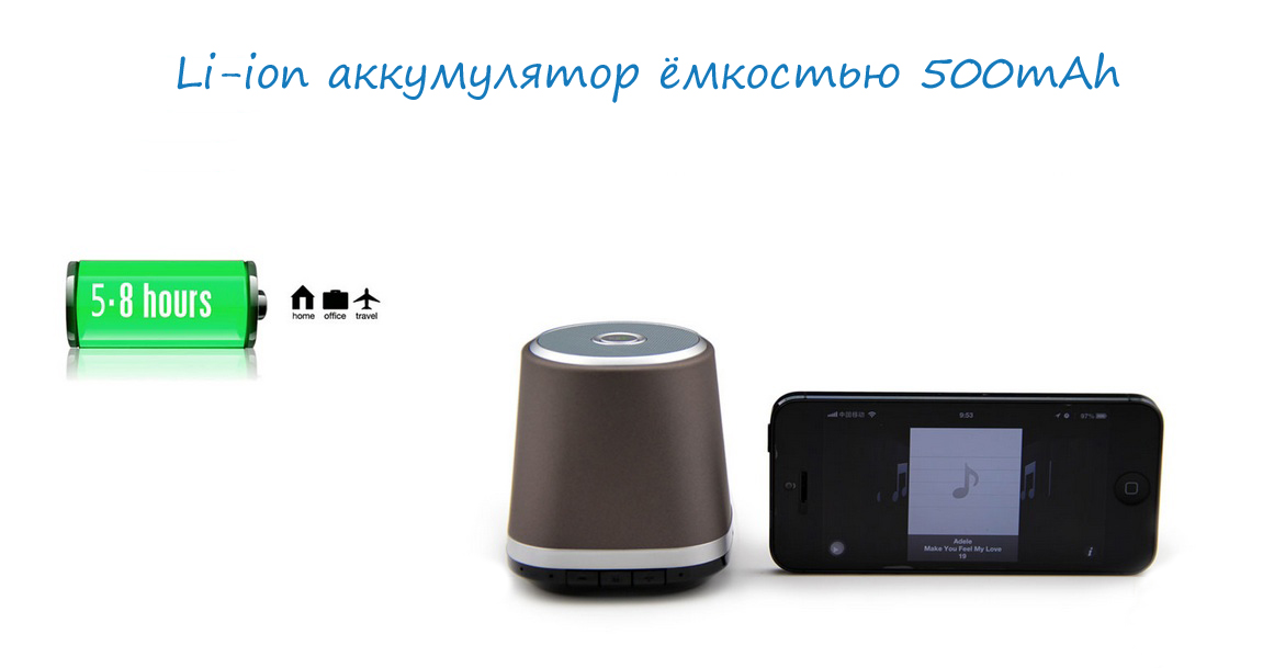 Аккумулятор: встроенный Li-ion аккумулятор, 3.7V/500mAh